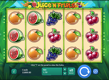 Аппарат Juice’n’Fruits состоит из пяти трехсимвольных барабанов, под которыми находятся разноцветные кнопки для настройки и активации спинов. По ячейкам симулятора перемещаются спелые лимоны, сочные арбузы, сладкие сливы, виноградные гроздья и красные вишенки. Формирование комбинаций сопровождается танцевальной музыкой, добавляющей праздничной атмосферы в азартное интернет развлечение.
