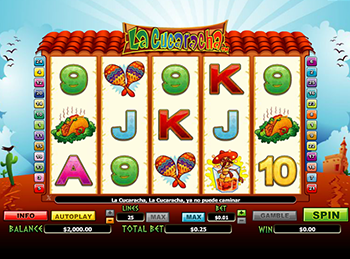 Таракан – это 5-барабанный симулятор с красочной графикой и пятнадцатью картинками. События разворачиваются в Мексике, поэтому на поле вас встречают колоритные изображения: гитара, сомбреро, кактусы и прочее.
