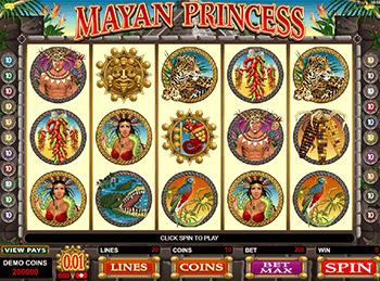 Многие тысячелетия назад племя Майя считалось самым процветающим. Знания, которыми обладали жители той цивилизации, до сих поражают умы современных историков и археологов. При помощи нового игрового автомата Mayan Princess азартные игроки смогут поближе познакомиться с этим племенем. Принцесса здесь является самой главной. Именно ей известны все тайны племени. Кроме того, она знает, как выиграть в автомате Принцесса Майя джекпот и очутиться в бонусном туре. Она поделится своими знаниями только с теми геймерами, которые рискнуть на деньги играть в Вулкан онлайн игры Mayan Princess.