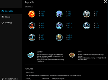 Играть на деньги в вышеуказанный slot лучше всего только после предварительного изучения состава призовых комбинаций и размеров выплачиваемых за них сумм. Для этого достаточно нажать на клавишу »paytable», после чего перед вами откроются таблицы с интересующими сведениями. Также необходимо обратить внимание на следующие особенности нового агрегата: