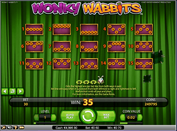 Игровой клуб Вулкан делает доступными для гэмблеров любимые азартные игры за счет вариации режимов: можно играть бесплатно или играть на деньги. Slot Wonky Wabbits – не исключение. Выбор формата доступа остается за игроками.